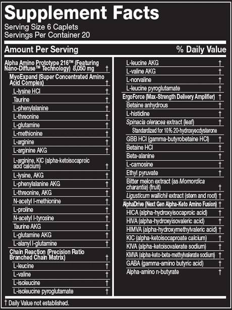 Alpha amino prototype 216 от компании MuscleTech – это мощнейшая аминокислотная добавка, разработанная с учетом последних технологий в области спортивного питания. Первыми эту новинку испробовали профессиональные атлеты и оказались удивлены его результатом, благодаря чему Alpha amino prototype 216 стал пользоваться сумасшедшим спросом. Причина такого мощного действия кроется в высоком анаболическом действии компонентов и их способности увеличивать синтез белка внутри мышечных волокон.